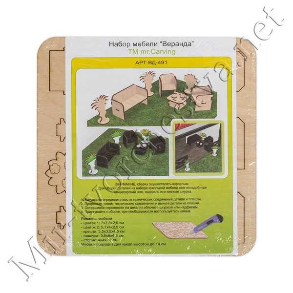 Заготовка для декорирования ВД-491 Набор мебели и аксессуаров фанера "Веранда, 9 предметов", Mr. Carving
