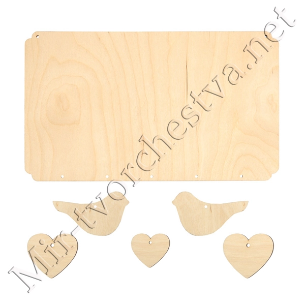 Заготовка для декорирования ВД-1065 Панно с подвесками фанера 30x0.3x18 см 0.4 см "Сердечки и птички", Mr. Carving