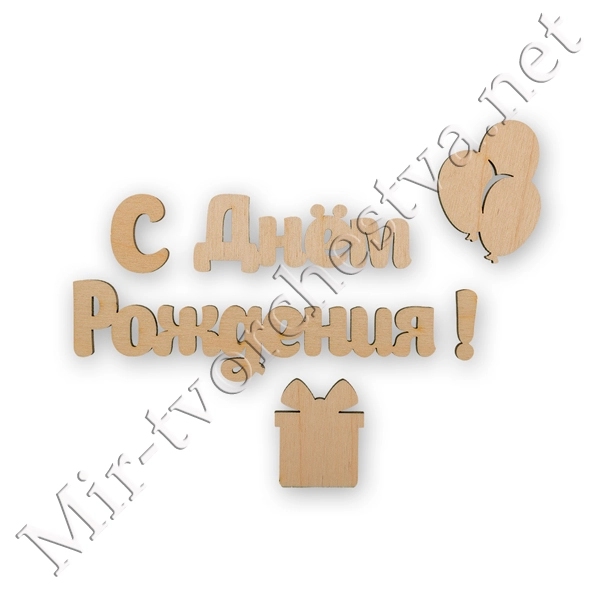 Заготовка для декорирования ВД-497 Мини-набор "С Днём Рождения!", фанера 3 - 10 см, Mr. Carving