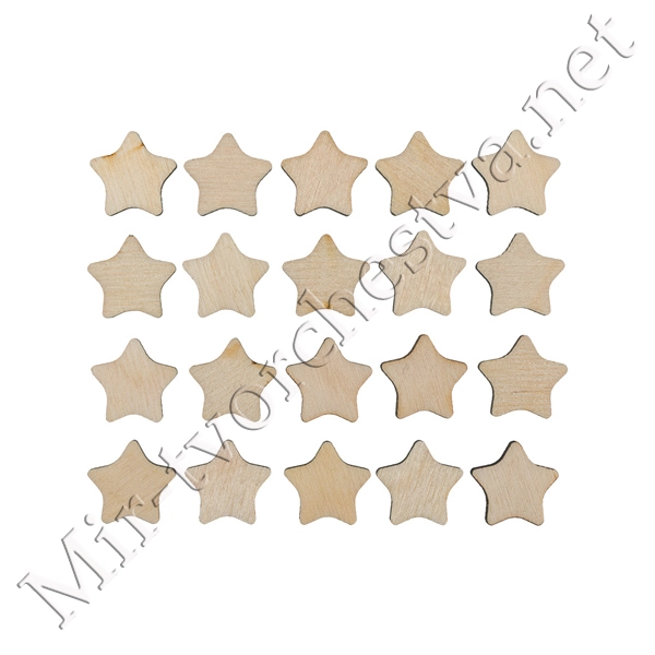 Заготовка для декорирования ВД-367 Мини-набор фанера d 2.5 см 2.5x2.3x0.3 см 0.3 см "Звёздочки" (1.5x1.6 см) 20 штук, Mr. Carving