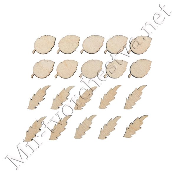 Заготовка для декорирования ВД-367 Мини-набор фанера d 2.5 см 2.5x2.3x0.3 см 0.3 см "Листочки" (1.1x2 см) 20 штук, Mr. Carving