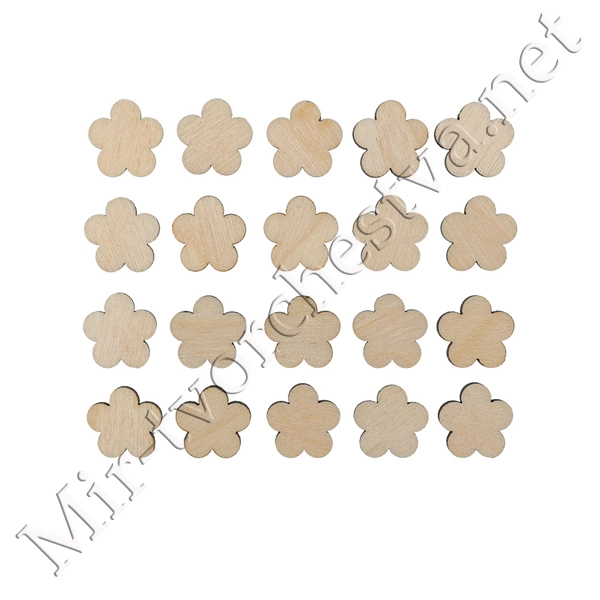 Заготовка для декорирования ВД-367 Мини-набор фанера d 2.5 см 2.5x2.3x0.3 см 0.3 см "Цветочки" (1.5x1.6 см) 20 штук, Mr. Carving