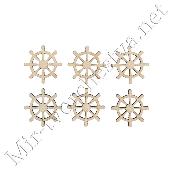 Заготовка для декорирования ВД-367 Мини-набор фанера d 2.5 см 2.5x2.3x0.3 см 0.3 см "Штурвал" (2.5x2.5 см) 6 штук, Mr. Carving