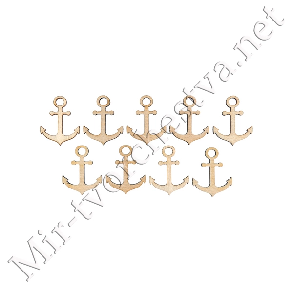 Заготовка для декорирования ВД-367 Мини-набор фанера d 2.5 см 2.5x2.3x0.3 см 0.3 см "Якорь" (2x2.5 см) 9 штук, Mr. Carving