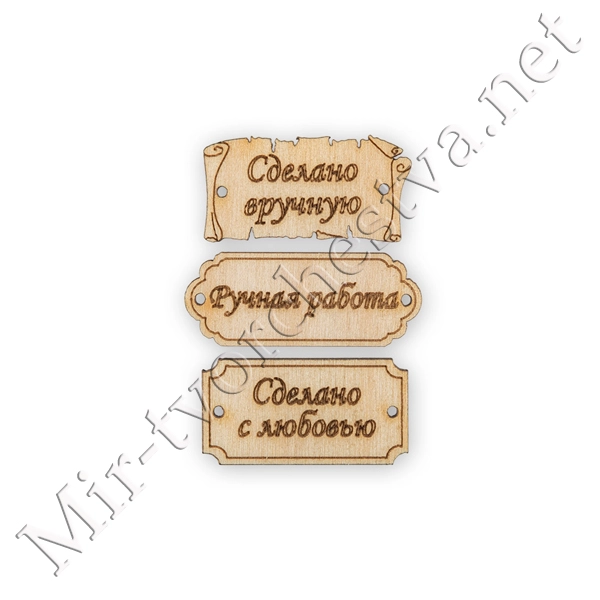 Заготовка для декорирования ВД-391 Набор бирок фанера 1.5x4x0.3 см 0.3 см 3 шт №4 "Сделано вручную", Mr. Carving