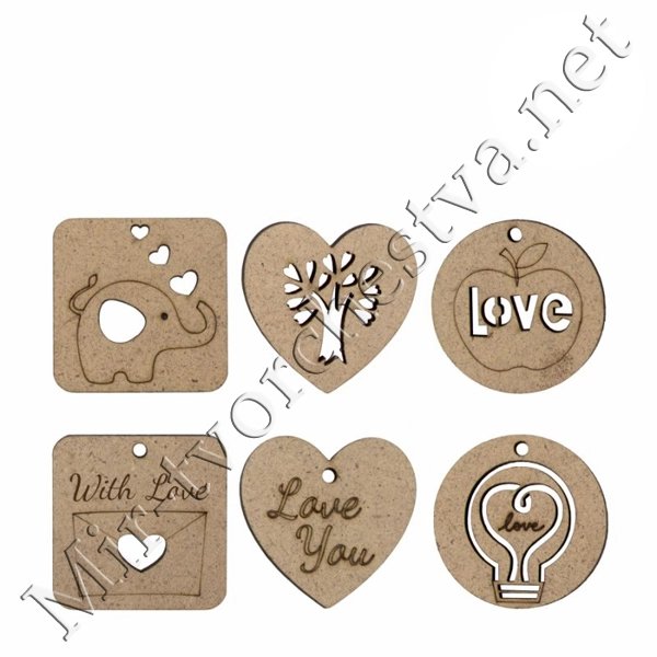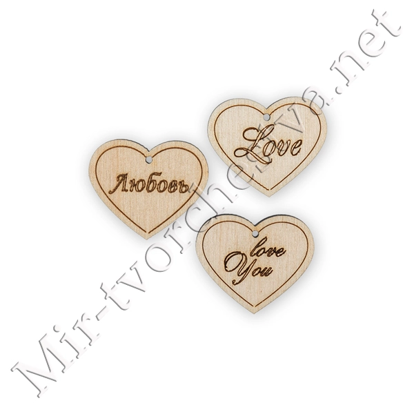 Заготовка для декорирования ВД-391 Набор бирок фанера 1.5x4x0.3 см 0.3 см 3 шт №3 "Любовь", Mr. Carving