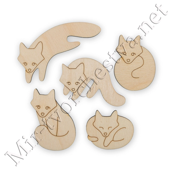 Заготовка для декорирования ВД-396 Набор "Лисята", фанера 3-8 см 5 шт, Mr. Carving
