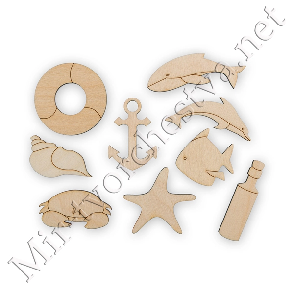Заготовка для декорирования ВД-397 Набор "Морской" фанера 1x7x0.3 см 0.3 см 9 шт, Mr. Carving