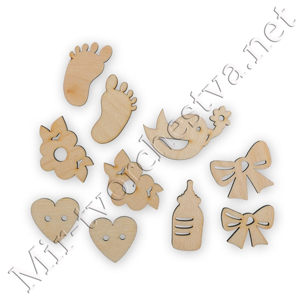 Заготовка для декорирования ВД-367 Мини-набор фанера d 2.5 см 2.5x2.3x0.3 см 0.3 см "Птички" (1.5x2.3 см) 16 штук, Mr. Carving