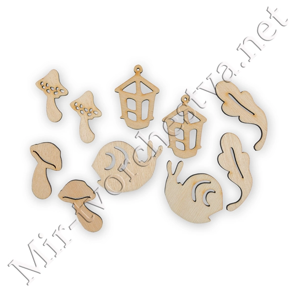 Заготовка для декорирования ВД-400 Мини-набор фанера 2.5x5x0.3 см 0.3 см 10 шт №4 "Улитка", Mr. Carving