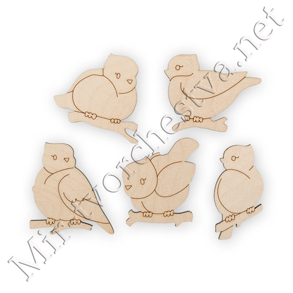 Заготовка для декорирования ВД-463 Набор "Пташки" фанера 2.5 - 4 см 5 шт, Mr. Carving