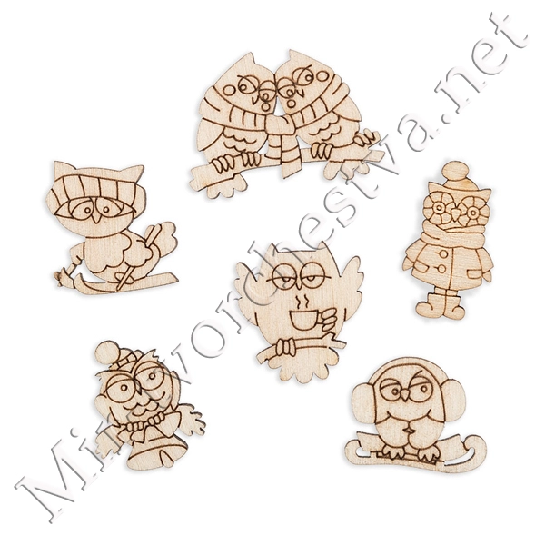 Заготовка для декорирования ВД-547 Мини-набор "Совы-лилипутики 2" фанера 2.5 см, Mr. Carving
