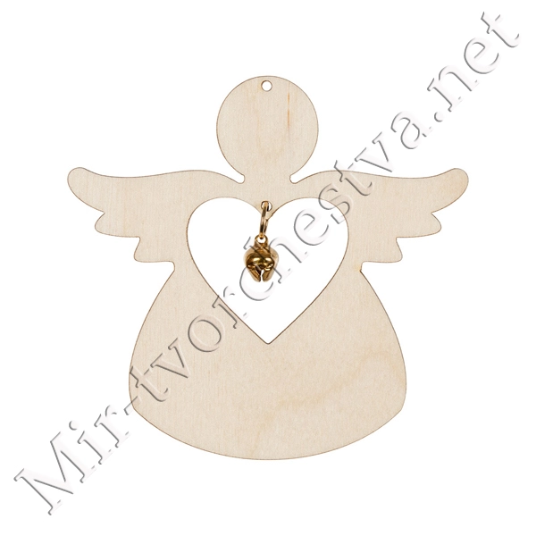 Заготовка для декорирования ВД-697 Подвеска "Ангел с бубенчиком" фанера 9x9.4x0.5 см 0.3 см, Mr. Carving