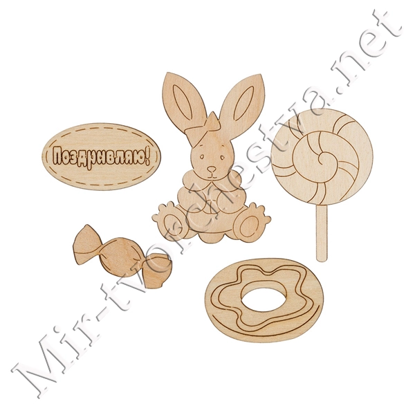 Заготовка для декорирования ВД-705 Набор фанера 1.2x3.5x0.3 см 0.3 см №1 "Зайка" (3-5см), Mr. Carving