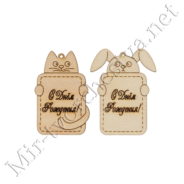 Заготовка для декорирования ВД-339 "Бирка резная" фанера 7x5.8x0.3 см 0.3 см 2 шт №1, Mr. Carving