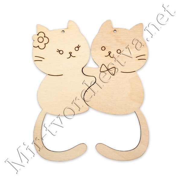 Заготовка для декорирования ВД-1084 Подвеска "Влюбленные котята" фанера 13.5x10x0.3 см 0.4 см, Mr. Carving