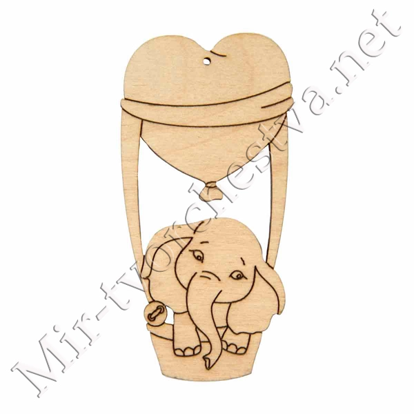 Заготовка для декорирования ВД-1080 Подвеска "Слоненок на воздушном шаре" фанера 12x8x0.3 см 0.4 см, Mr. Carving