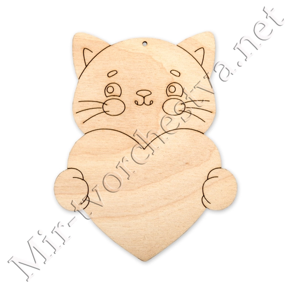 Заготовка для декорирования ВД-1083 Подвеска "Котенок с сердцем" фанера 12.5x10x0.3 см 0.4 см, Mr. Carving