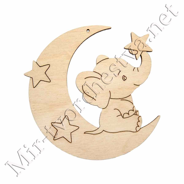 Заготовка для декорирования ВД-1081 Подвеска "Слоненок на луне" фанера 12.5x10x0.3 см 0.4 см, Mr. Carving