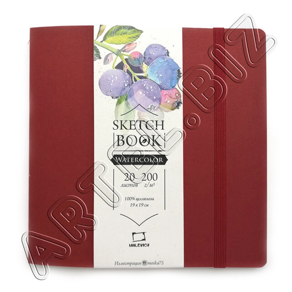 Скетчбук для акварели Waterfall "Nature", мелкая фактура, Бордовый, 200 г/м2, 19х19 см, 20л., Малевичъ
