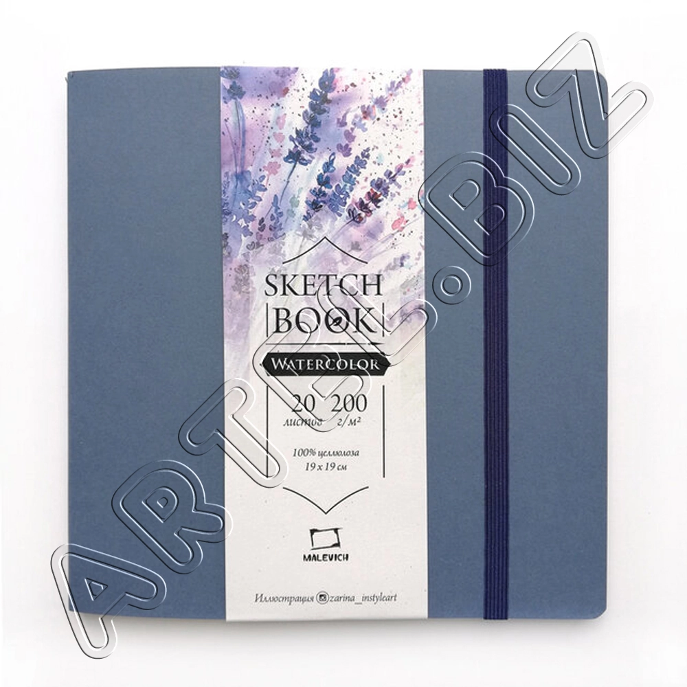 Скетчбук для акварели Waterfall "Nature", мелкая фактура, Синий, 200 г/м, 19х19 см, 20л., Малевичъ
