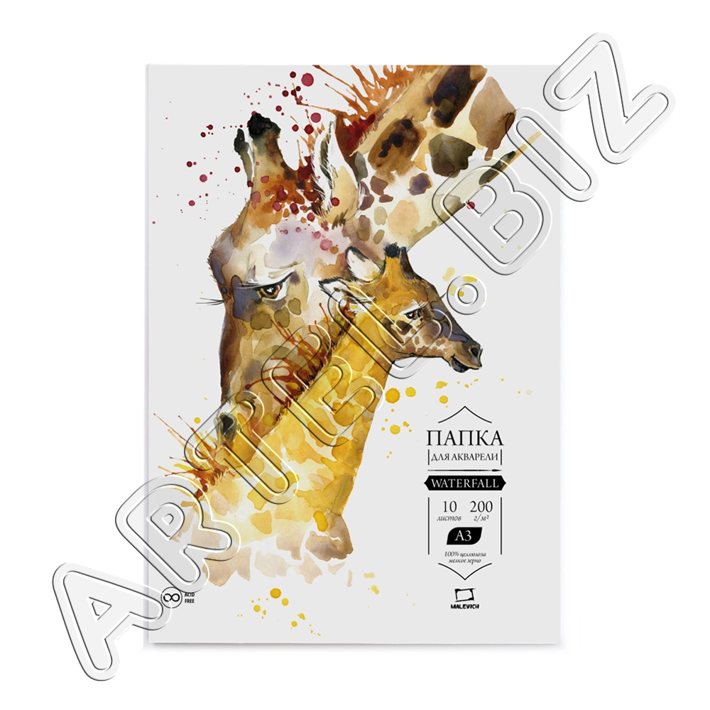 Папка для акварели "Waterfall", 200 г/м2, А4, 10л., Малевичъ