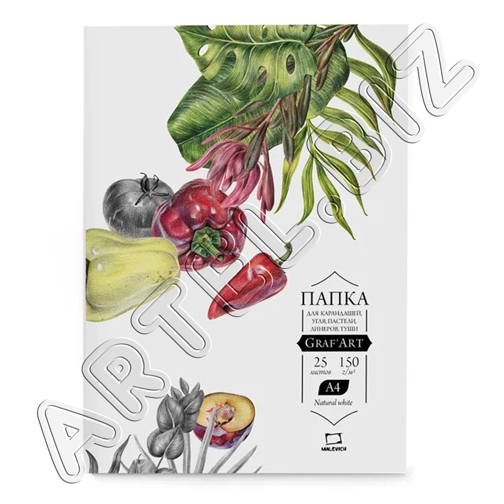 Папка с бумагой для сухих техник GrafArt 150 г/м2, A4, 25 л., Малевичъ