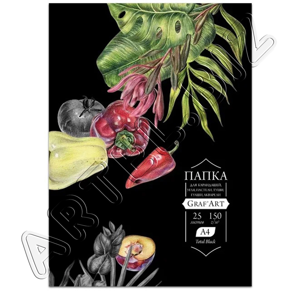 Папка с бумагой для сухих техник GrafArt black, 150 г/м2, А4, 25л., Малевичъ