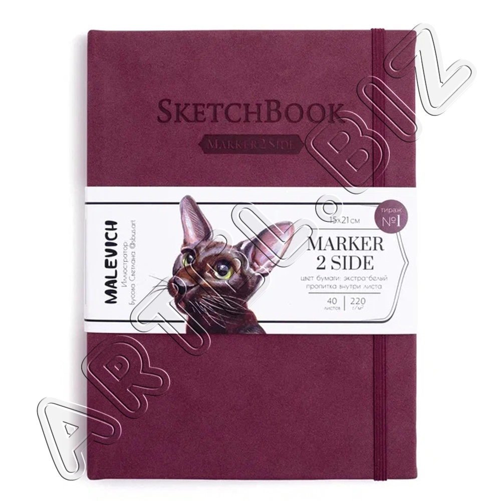 Скетчбук для маркеров, Бордовый, двусторонняя бумага 220 г/м2, 15х21 см, 40л., Малевичъ