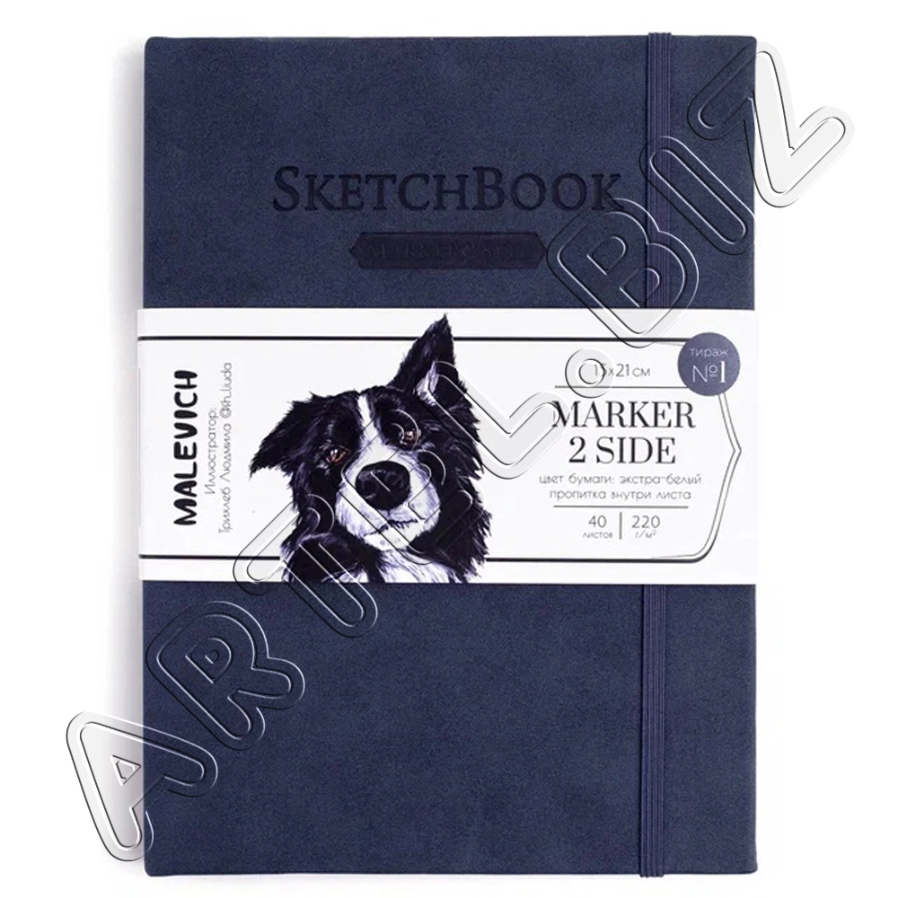 Скетчбук для маркеров, Индиго, двусторонняя бумага 220 г/м2, 15х21 см, 40л., Малевичъ