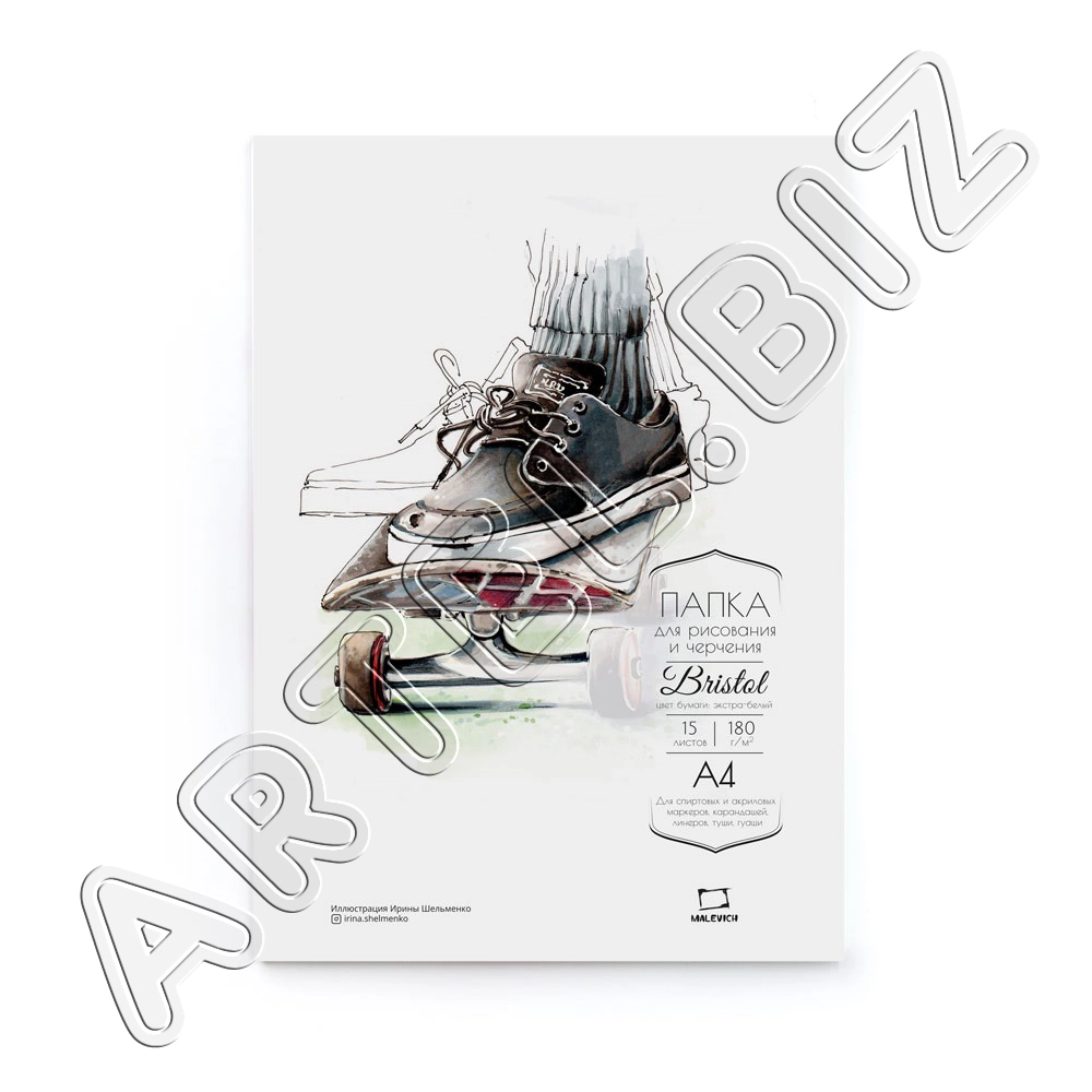 Папка с бумагой для графики и маркеров Bristol, 180 г/м2, А4, 15л., Малевичъ