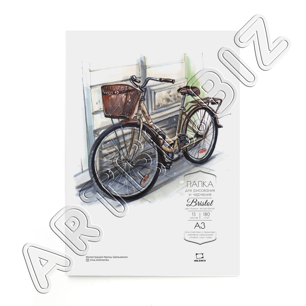 Папка с бумагой для графики и маркеров Bristol, 180 г/м2, А3, 15л., Малевичъ