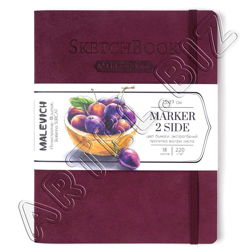 Скетчбук для маркеров Markers, Бордо, 220 г/м2, 15х19 см, 18л., Малевичъ