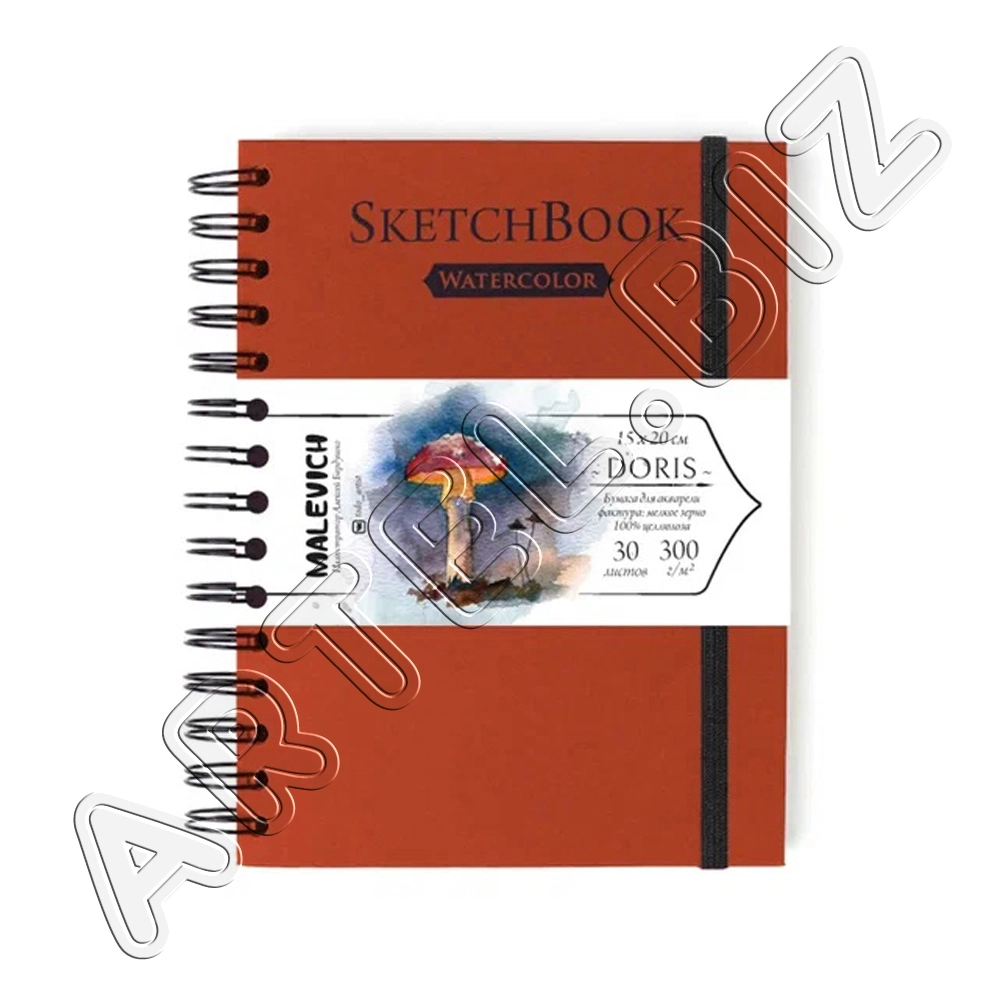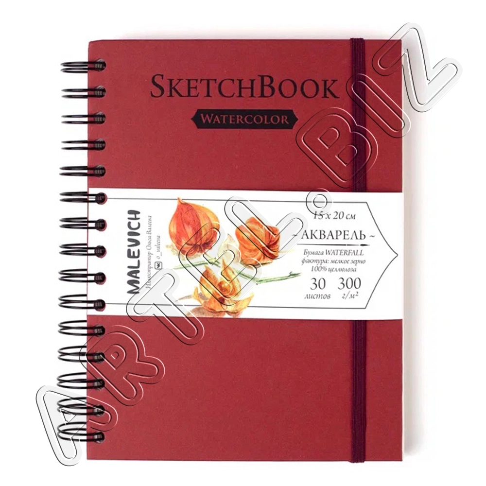 Скетчбук Nature для акварели, 100% Целлюлоза WaterFall, спираль, Красный, 300 г/м2, 15х20 см, 30л., Малевичъ