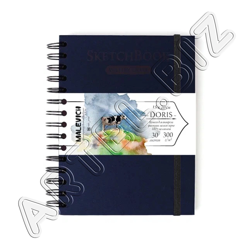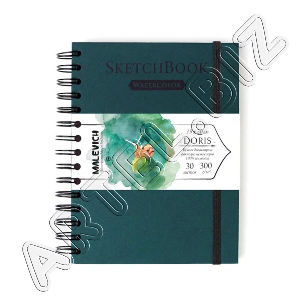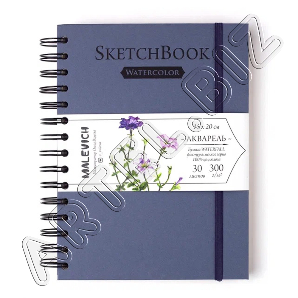 Скетчбук Nature для акварели, 100% Целлюлоза WaterFall, спираль, Синий, 300 г/м2, 15х20 см, 30л., Малевичъ