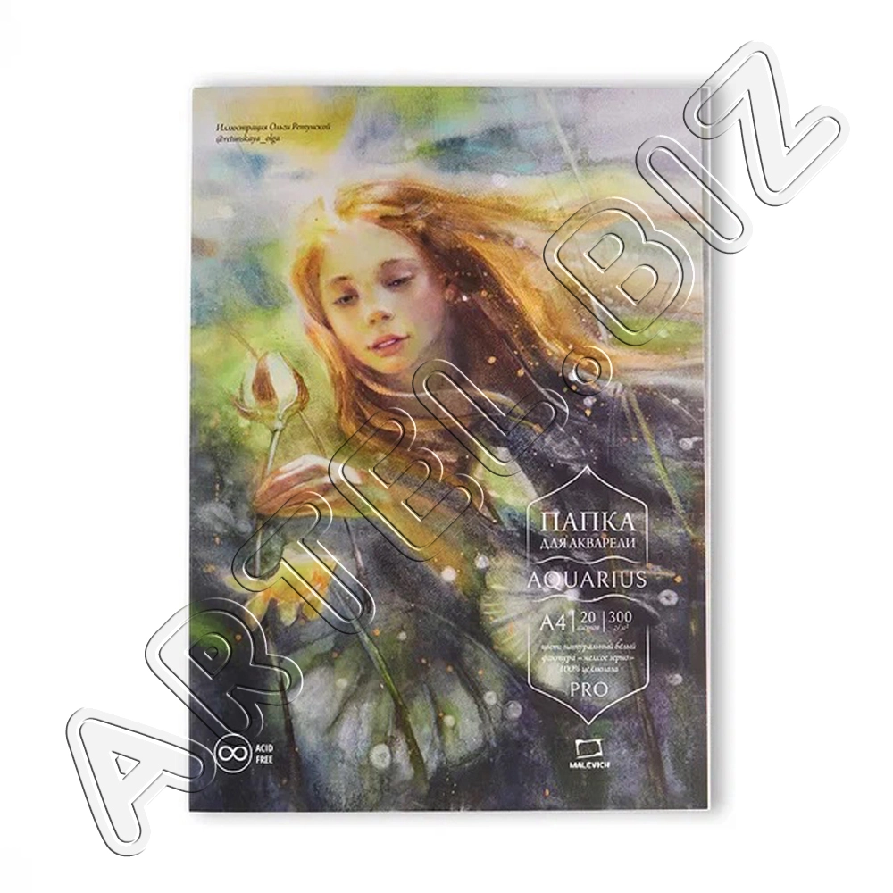 Папка для акварели Aquarius, 300 г/м2, Fin, А4, 20л., Малевичъ