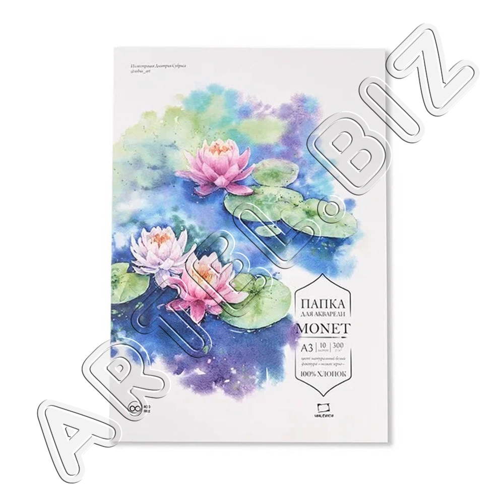 Папка для акварели Monet, 100% Хлопок, 300 г/м2, экстра-мелкое зерно, А3, 10л., Малевичъ