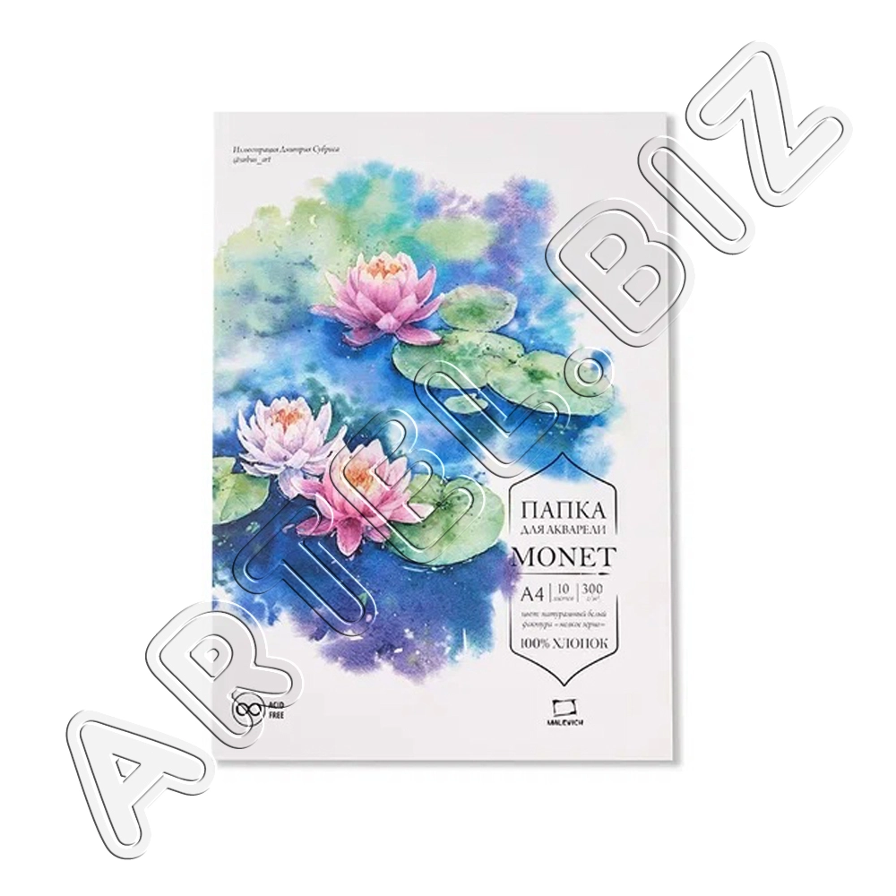 Папка для акварели Monet, 100% Хлопок, 300 г/м2, экстра-мелкое зерно, А4, 10л., Малевичъ