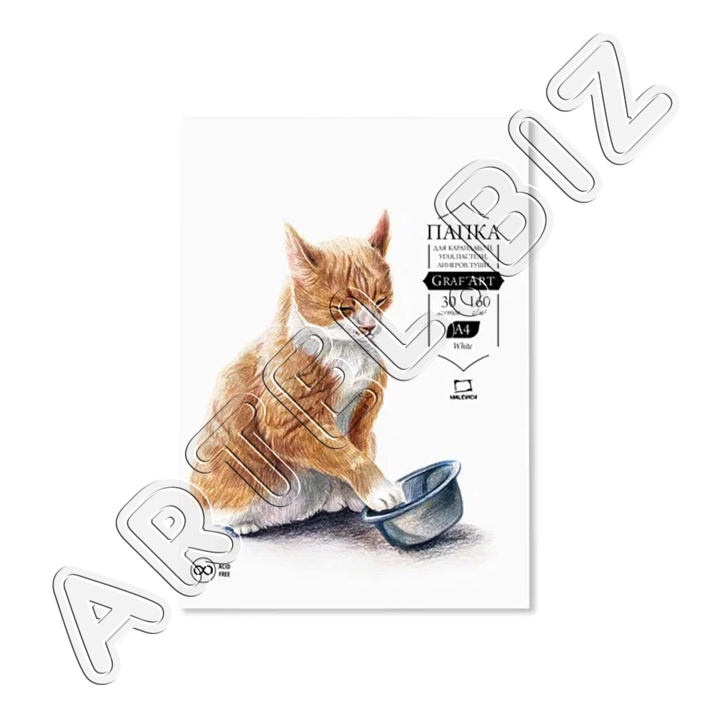 Папка с бумагой для рисования карандашами GrafArt, 160 г/м2, А4, 30л., Малевичъ