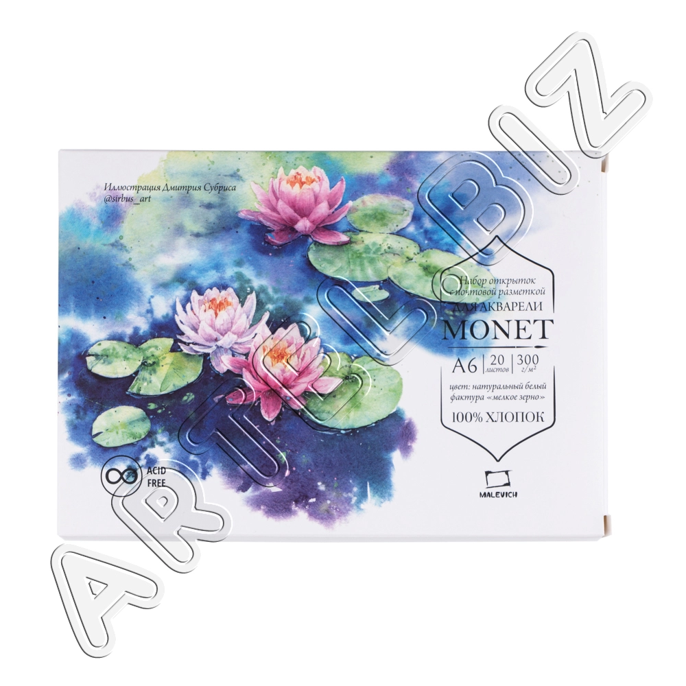 Бумага для акварели Monet, 100% Хлопок, 300 г/м2, экстра-мелкое зерно, А2, Малевичъ