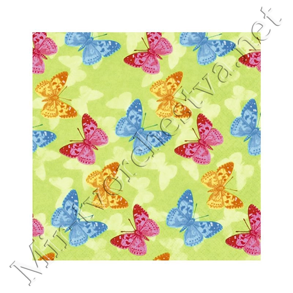 Декупажная салфетка "Бабочки", зеленые, 33*33 см, 17,5 г/м2, ti-flair