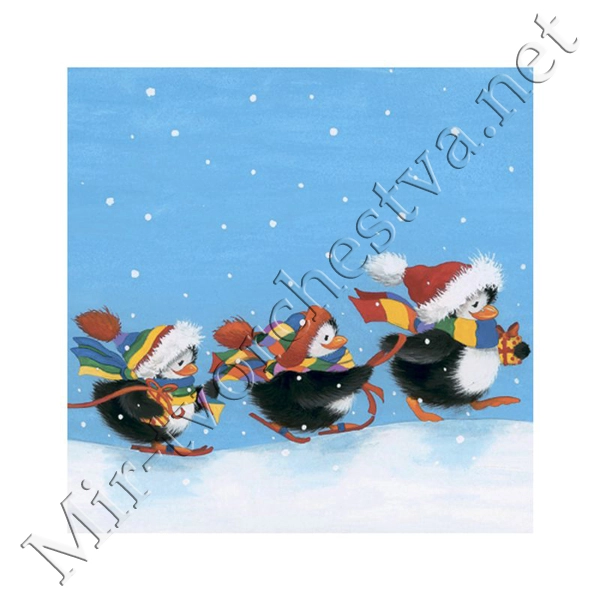 Декупажная салфетка "Веселые пингвины", 33*33 см, 17,5 г/м2, ti-flair