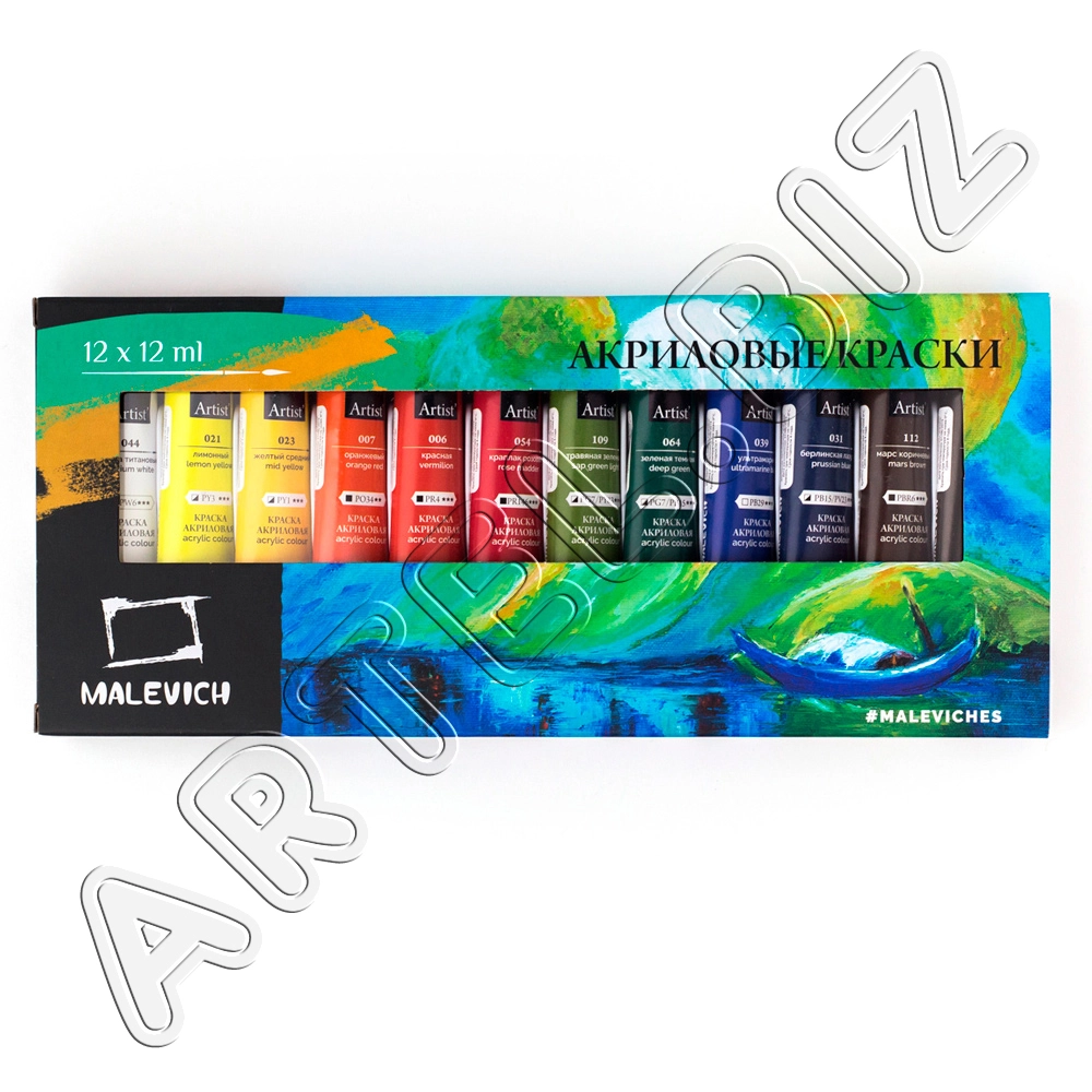 Набор акриловых красок, 12 цв. по 12 мл, Малевичъ