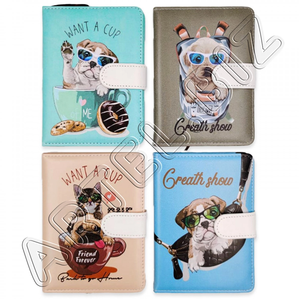 Блокнот А6 иск.кожа 80л CUTE клетка,магн.заст., Собака в чашке, арт.10574