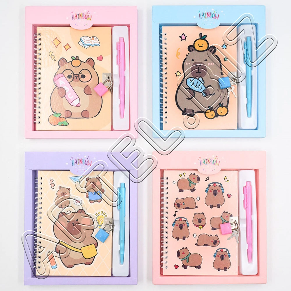 Блокнот+ручка на замочке КАПИБАРА подар.упак.17,5*19,5см., с карандашом, арт.64930, Феникс