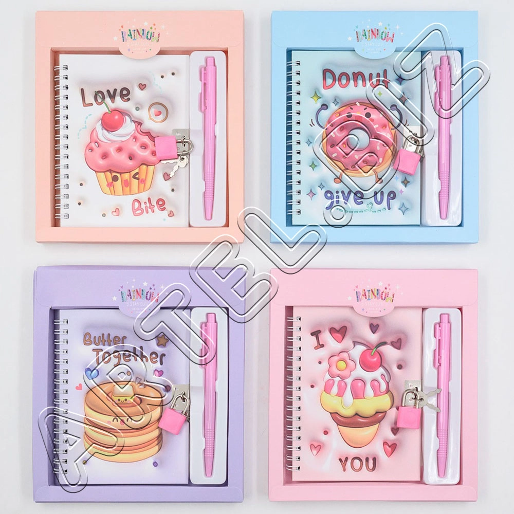 Блокнот+ручка на замочке ПИРОЖЕНКИ подар.упак.19,5*17,5см., Кекс, арт.64920
