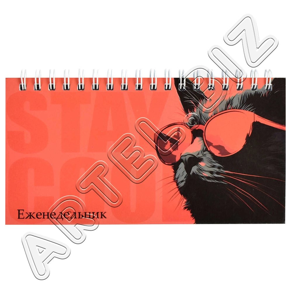 Еженедельник 165*85 гребень 64л КОТ В ОЧКАХ арт.68089, Феникс