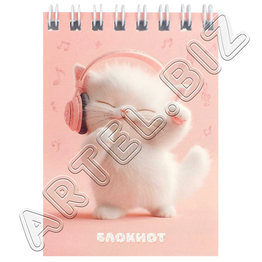 Блокнот А7 гребень 40л КОТЕНОК МЕЛОМАН клетка арт.70964