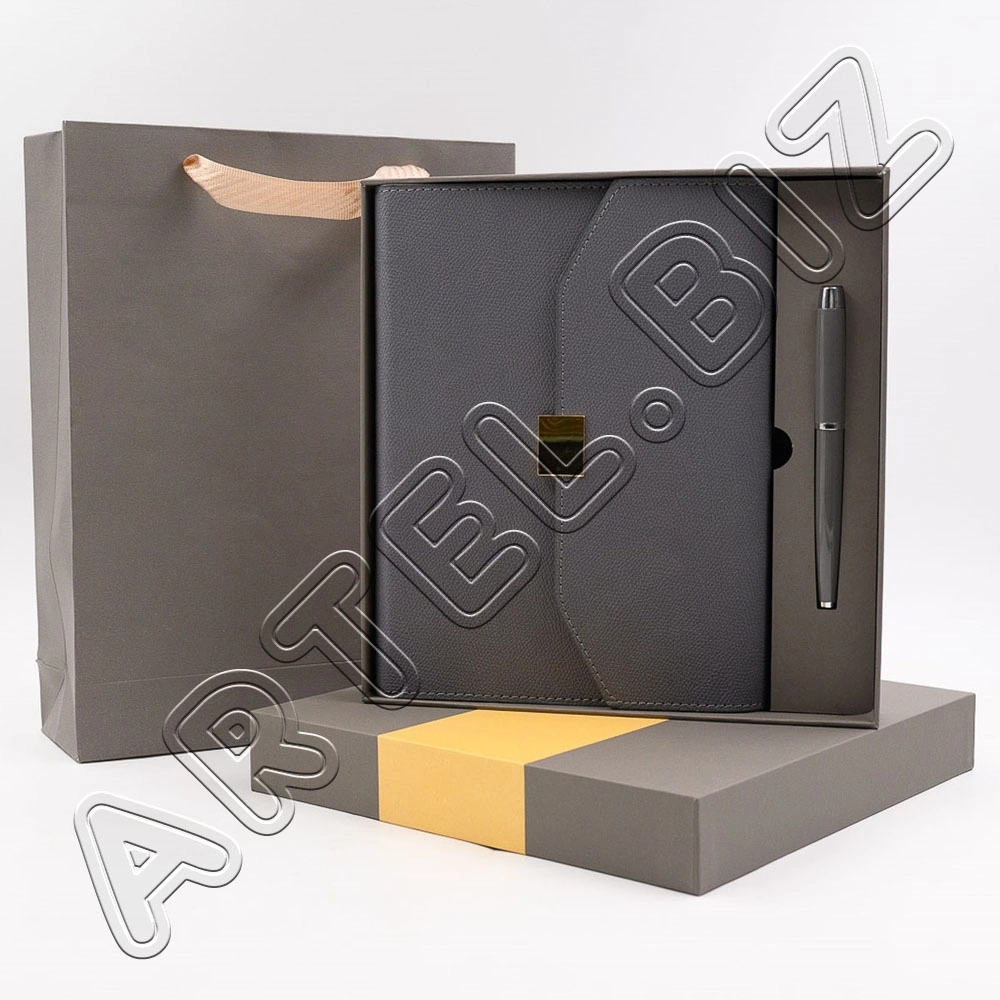Ежедневник А5 иск.кожа на кольцах +ручка 90л BUSINESS в подарочной упаковке, СЕРЫЙ, Maylott