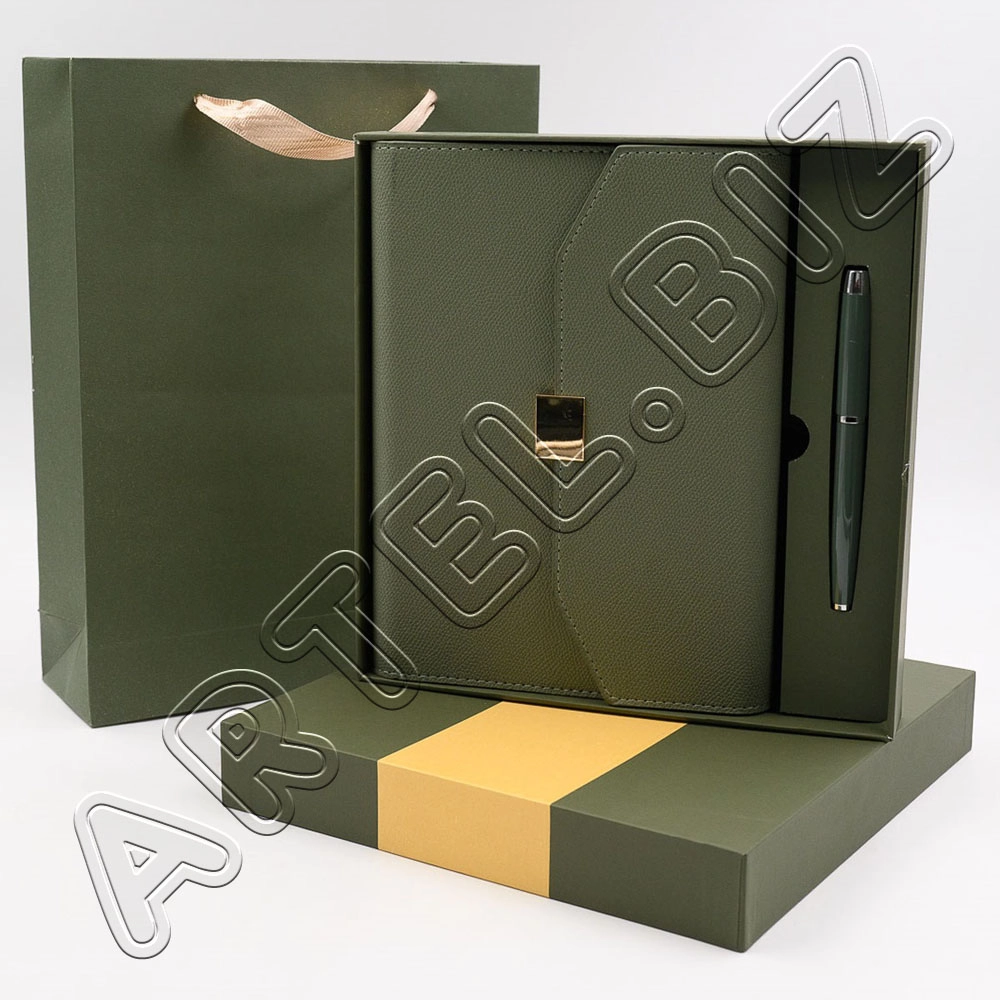 Ежедневник А5 иск.кожа на кольцах +ручка 90л BUSINESS в подарочной упаковке, ОЛИВА, Maylott